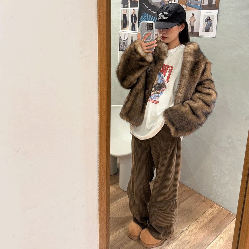 人造皮草鉤釦短大衣