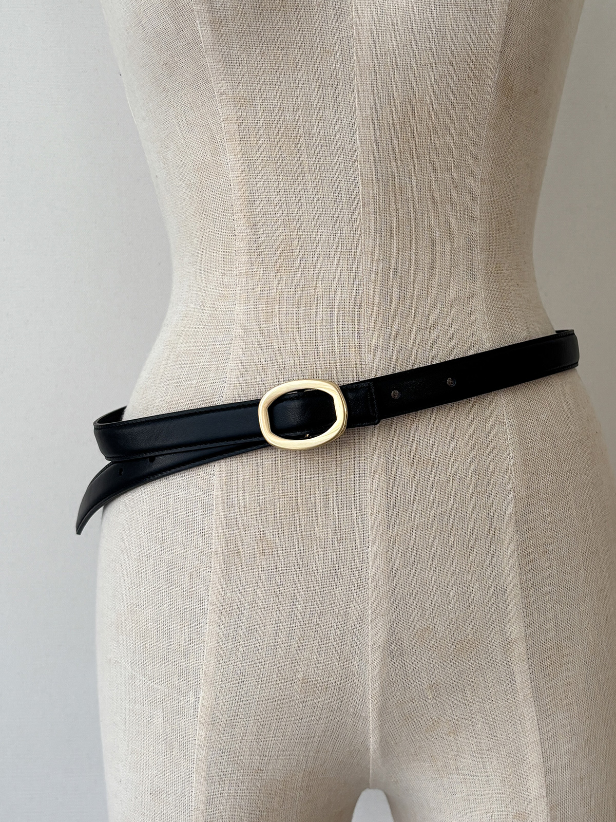 光面皮橢圓釦牛皮腰帶