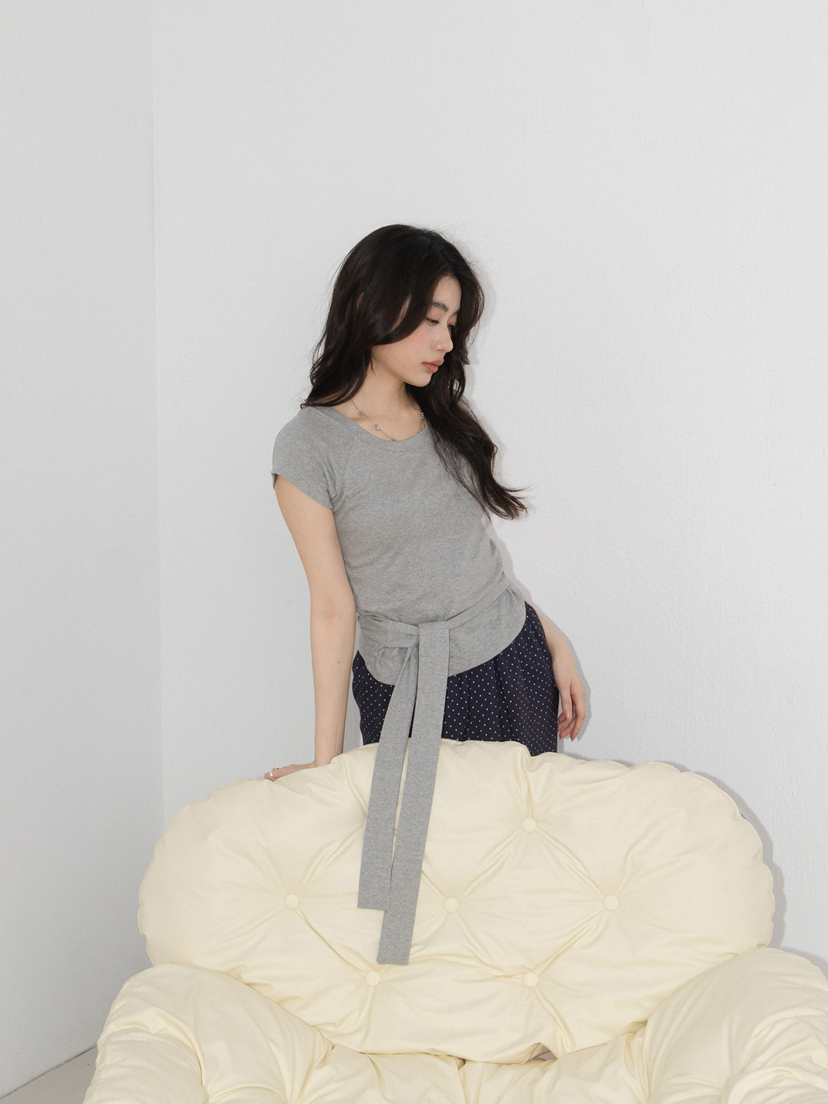合身棉料綁帶短袖上衣