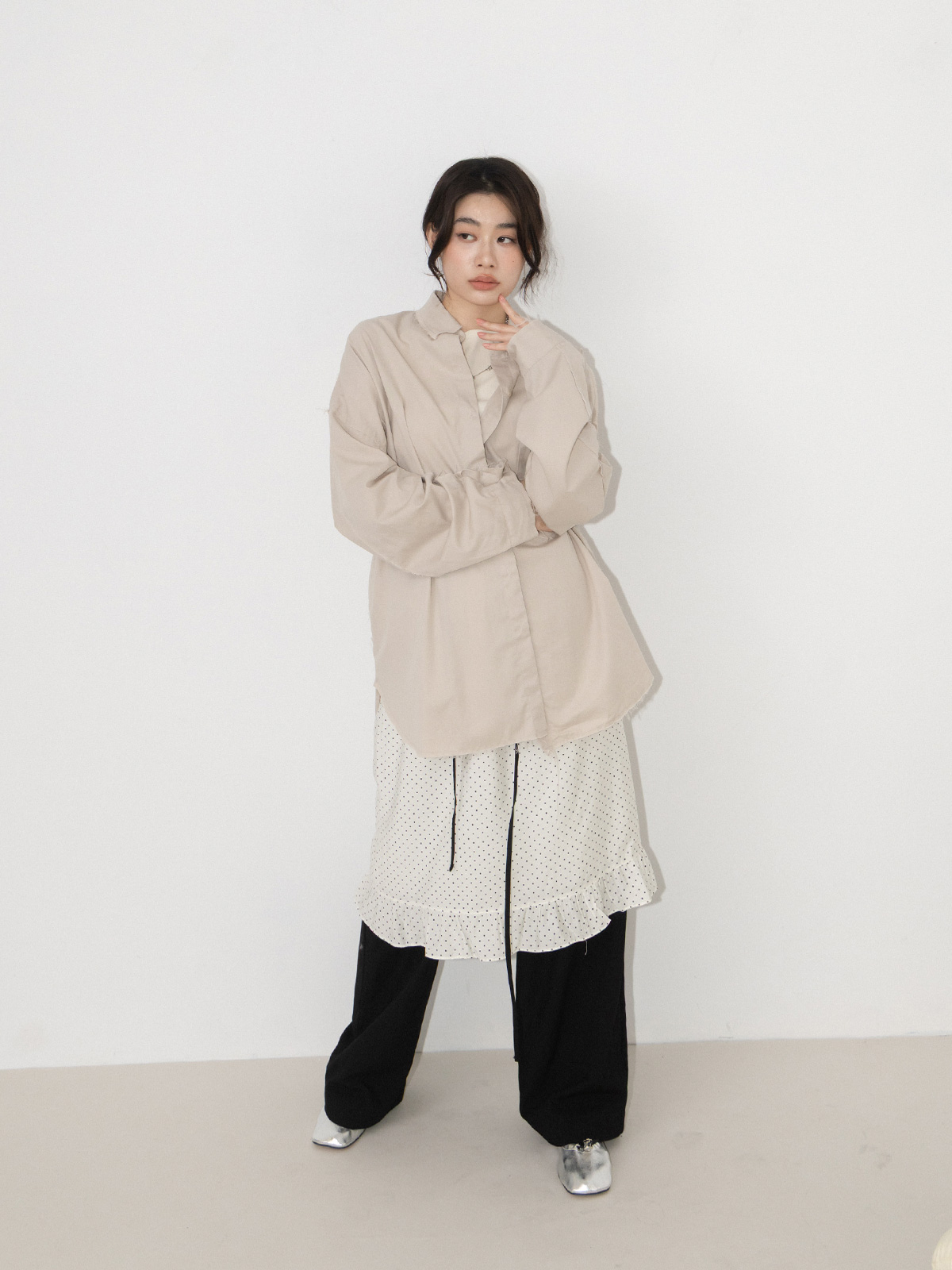 鬚邊素色單口袋襯衫