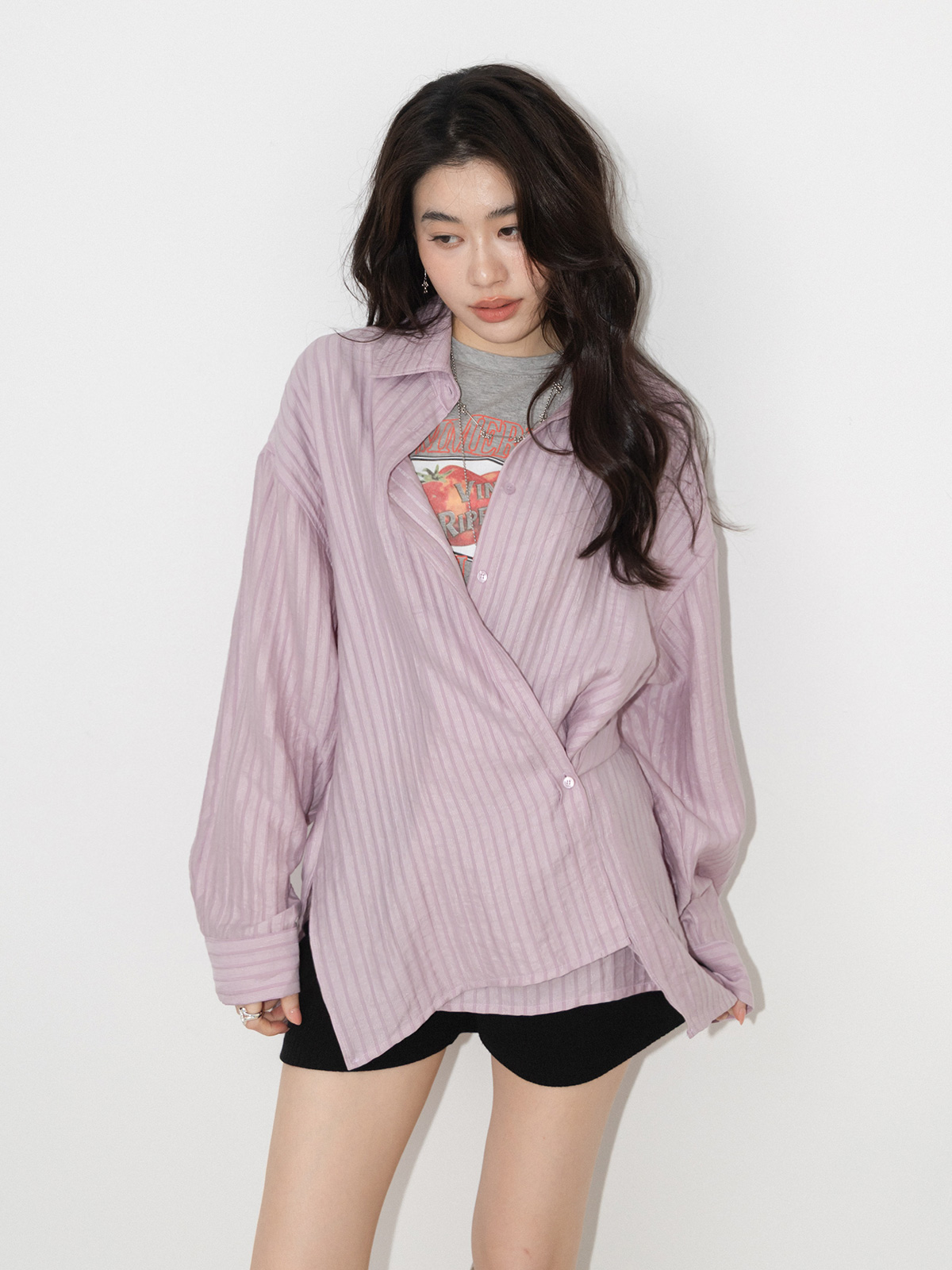 微光澤直坑條軟料襯衫