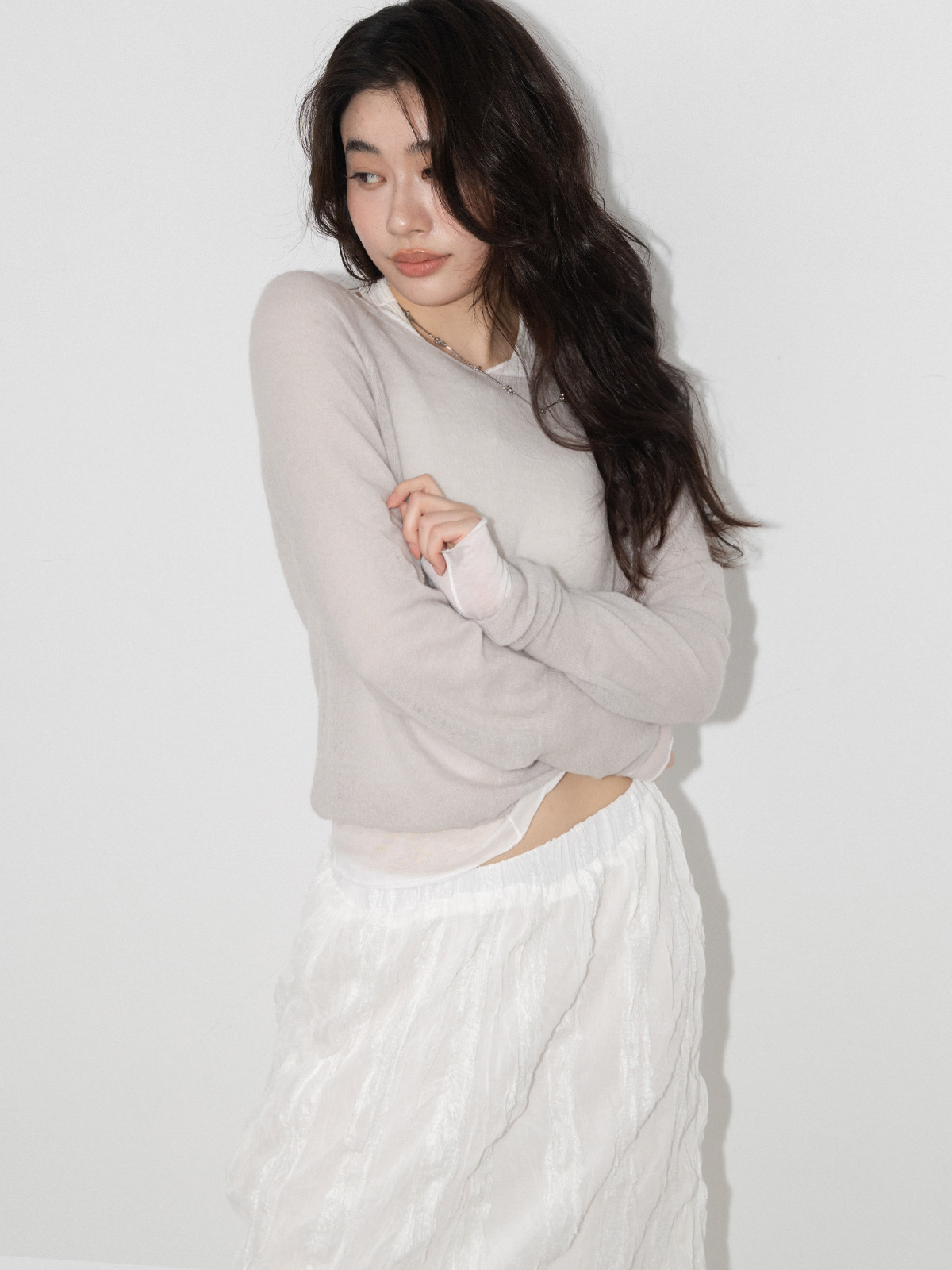微翹捲領邊透感針織上衣