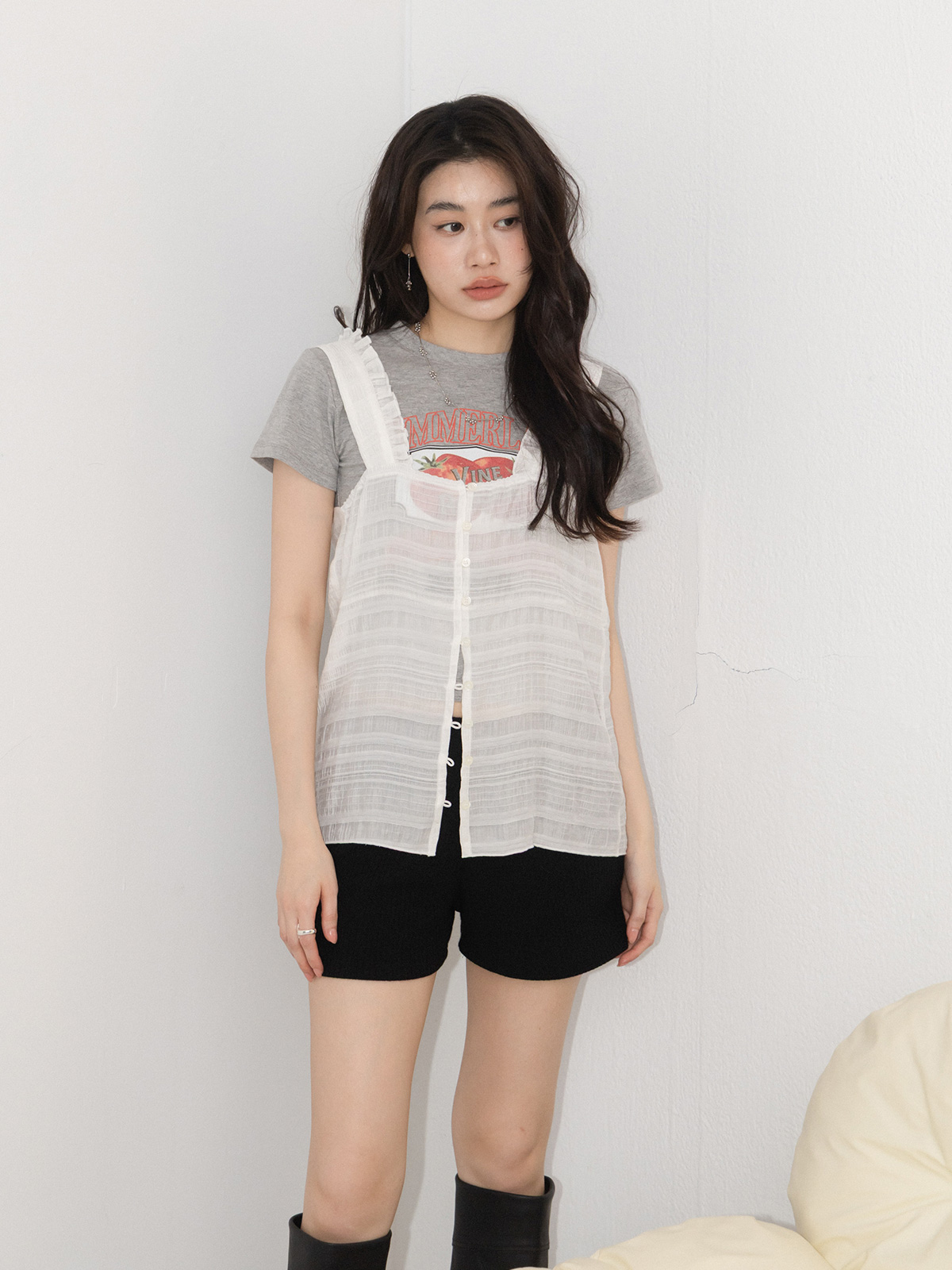 仙氣透紗抓皺背心