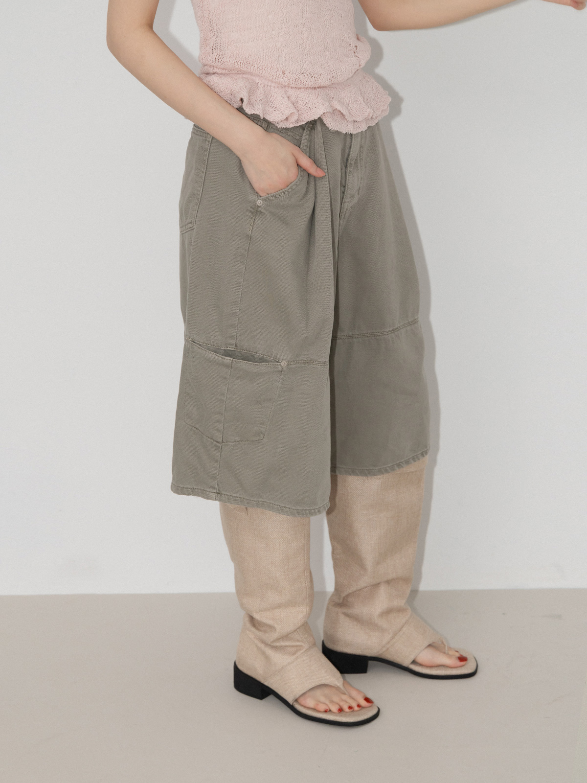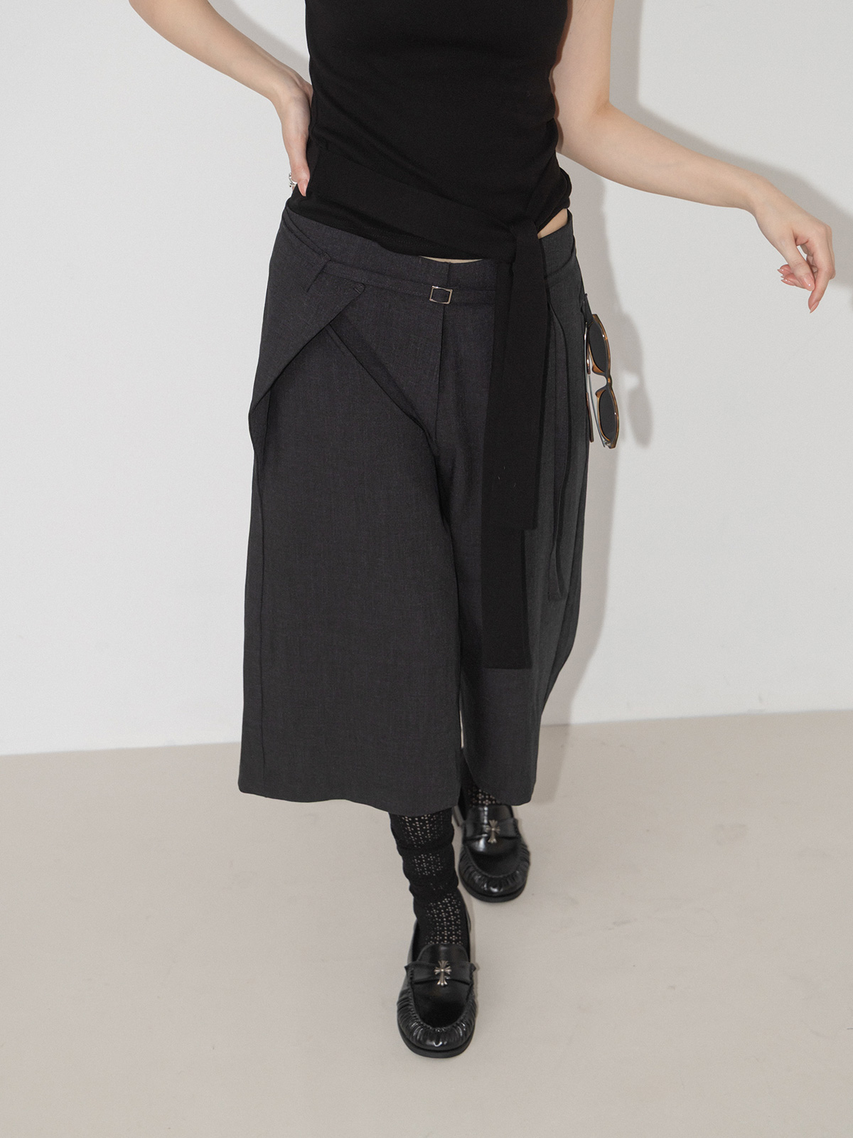 釦環綁帶側片西裝膝下褲