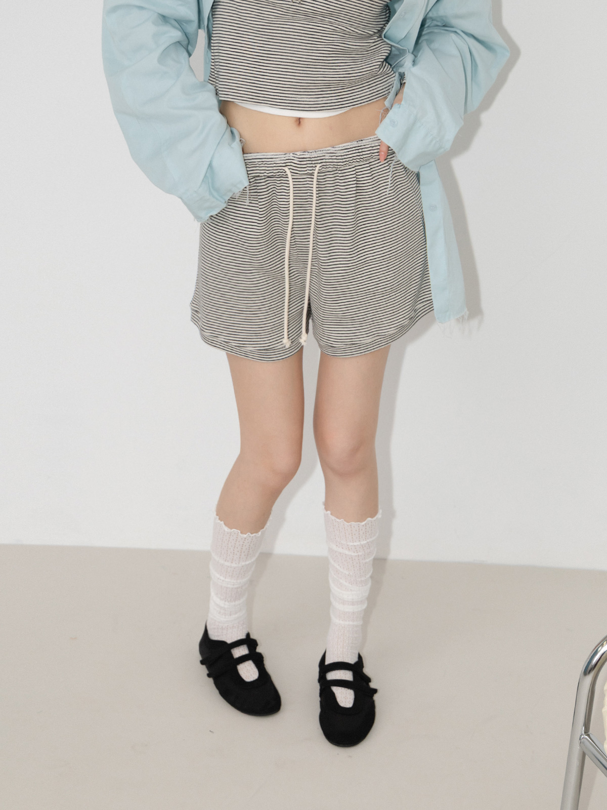 輕鬆條紋棉料短褲