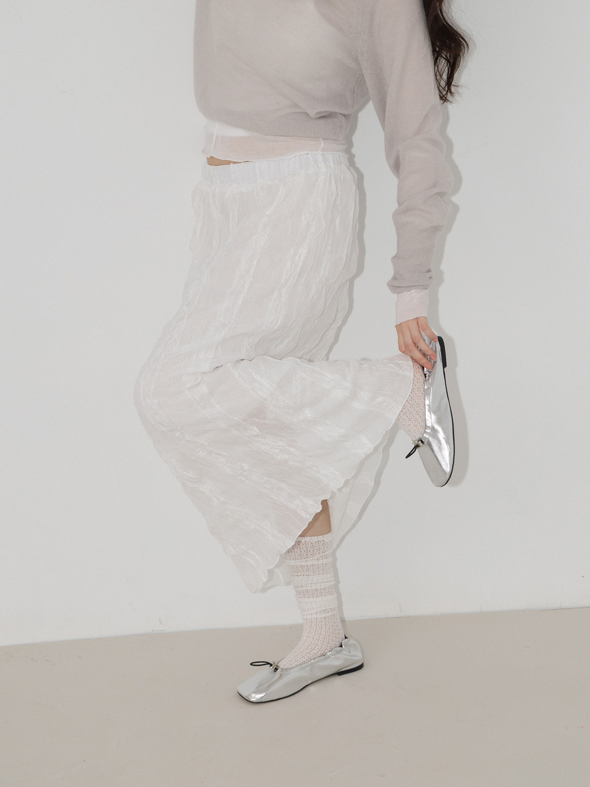 水波感皺皺蕾絲直筒裙