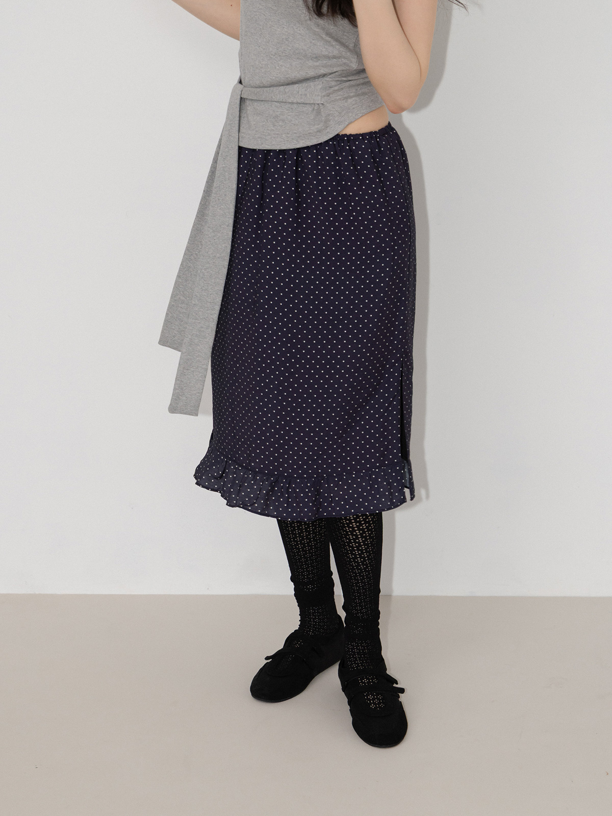 小波點荷葉襬及膝裙