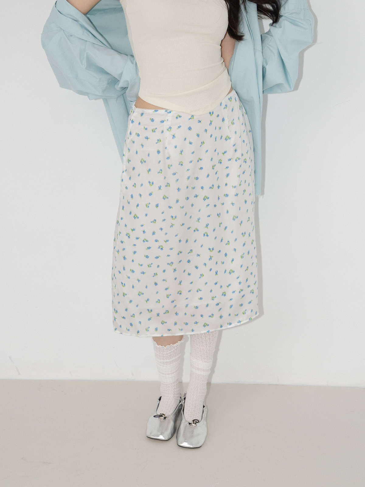 藍星花緞面光澤及膝裙
