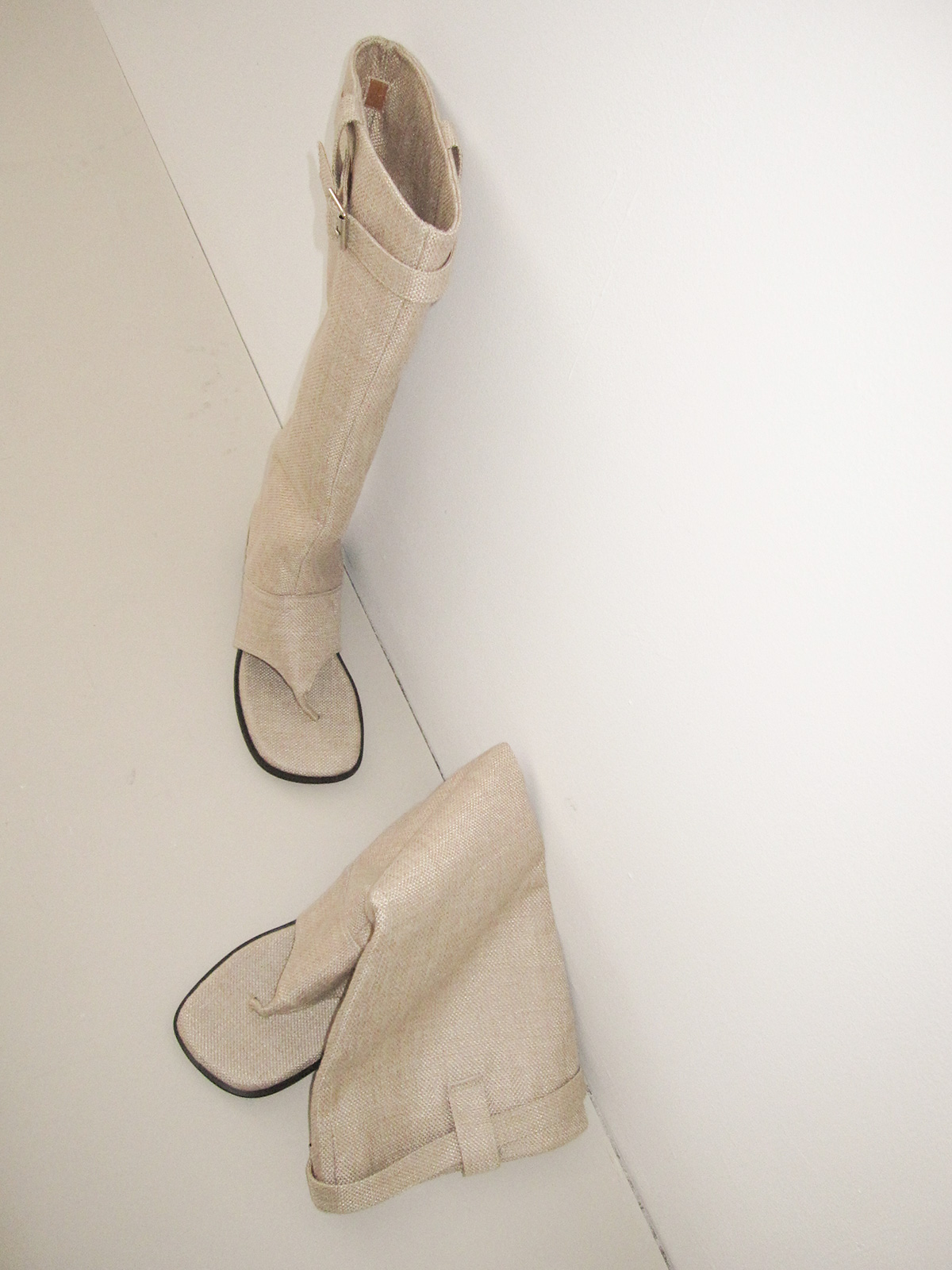 帆布織紋露趾釦環長靴