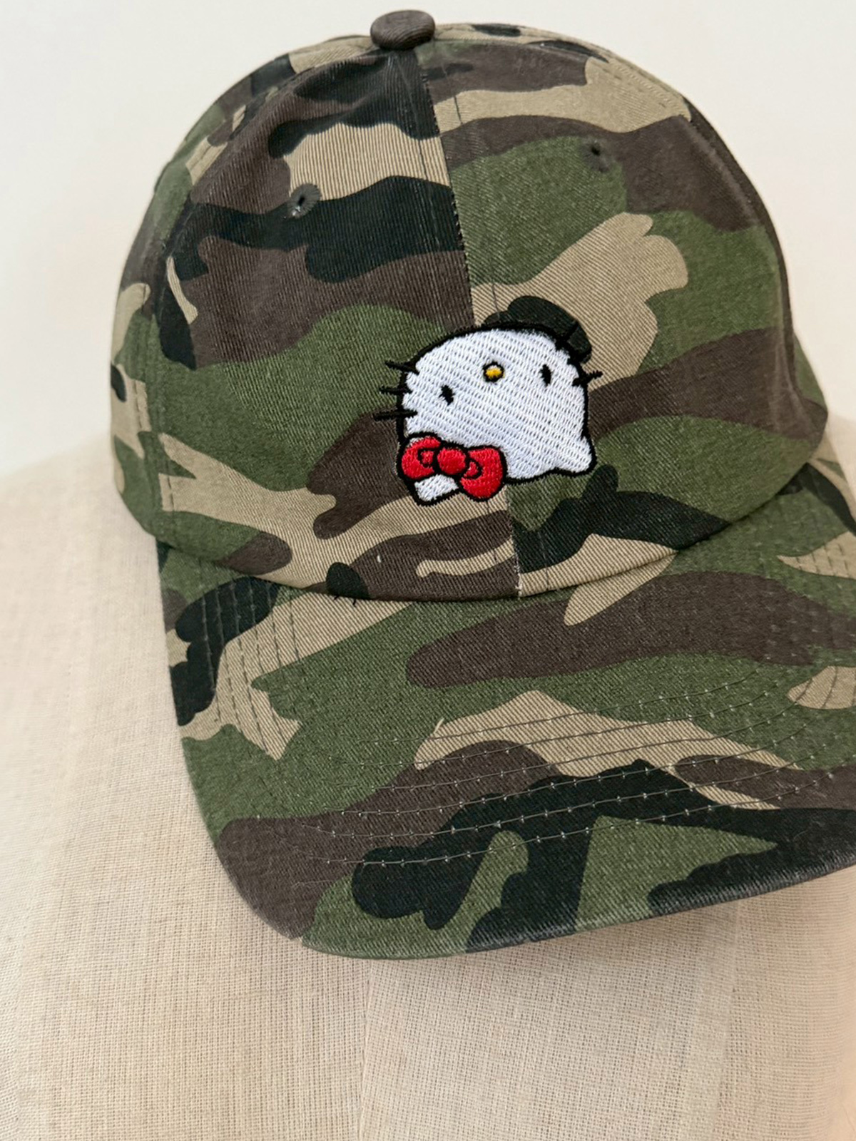倒轉凱蒂貓刺繡迷彩鴨舌帽
