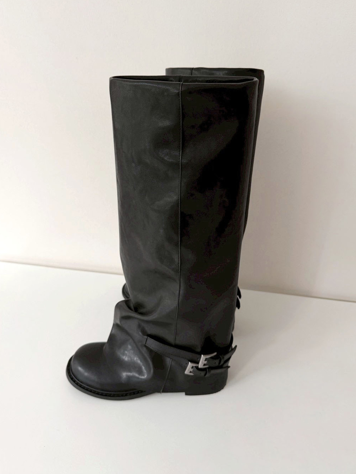 光面皮低雙環釦襪套長靴