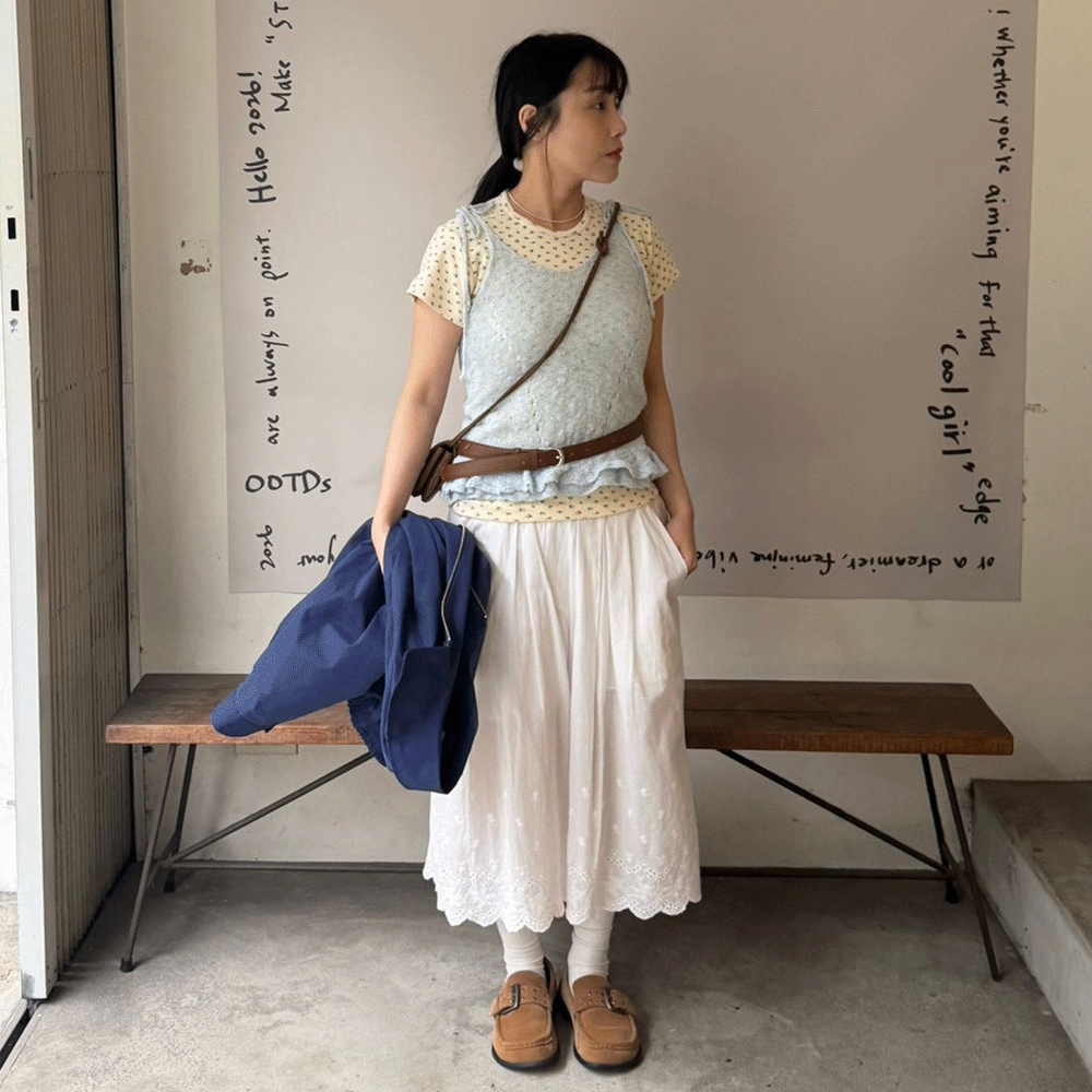 洞洞針織荷葉邊綁帶背心