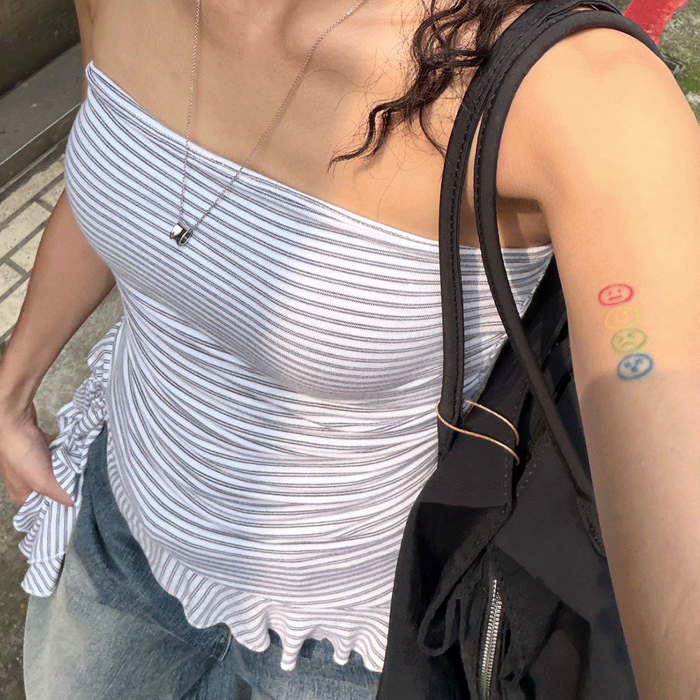 平口橫條荷葉垂帶BraTop