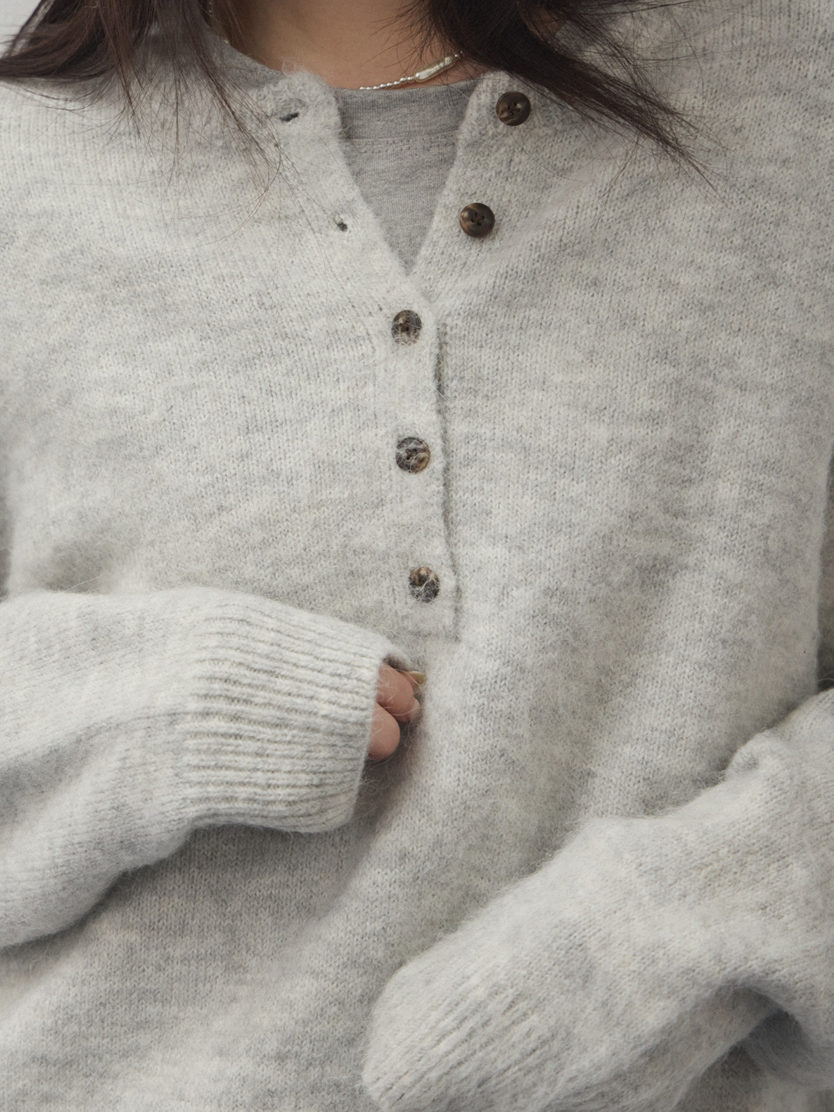 乖巧圓領開釦毛海針織衫