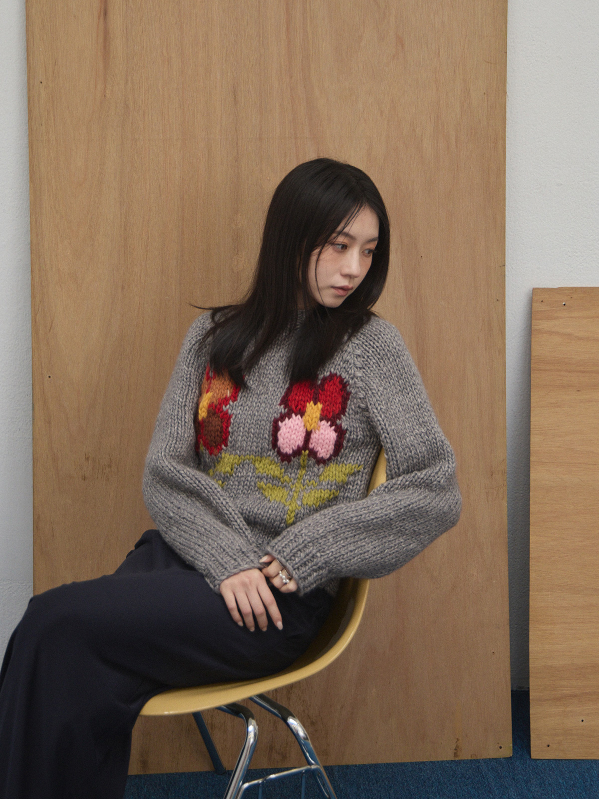 牽手彩色小花針織衫
