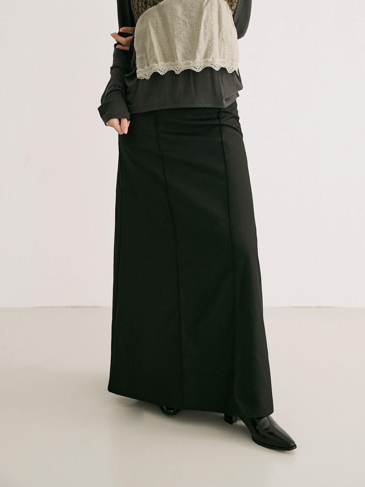 拼接線A字西裝傘裙