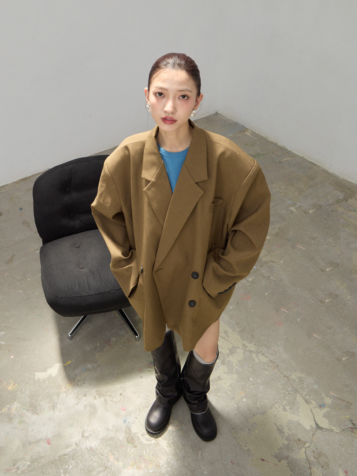 墊肩雙排釦寬版西裝外套
